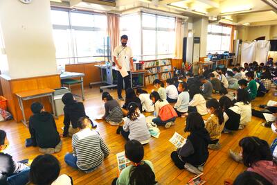 自主学習を3冊以上達成し、校長先生から賞状を貰った子に、校長先生からニッシーの20周年記念シールがプレゼントされました!