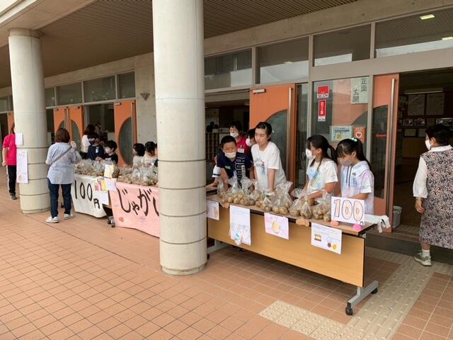 学校で収穫したじゃがいもを子供たちが販売しました。大盛況で、すぐに売り切れました!