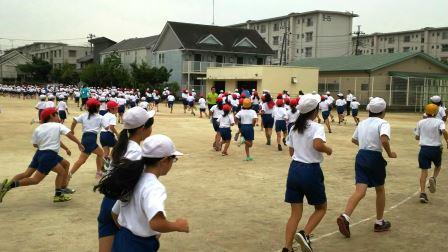 11月末の校内持久走大会に向けて、校庭で走ります。
