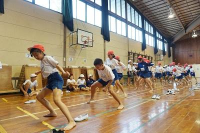雨で大きな水たまりのような校庭は使えず、放課後の体育館では体力テストの練習を兼ねた陸上大会練習。