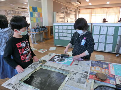 本日、書写担当教員から、校内書きぞめ展で特選の児童に対して、市内書きぞめ展の結果が伝えられました。