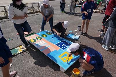 そこで毎年、6年生がお世話になったお礼も兼ねて、みんなに楽しく使って欲しいとジャンプ台に各々のデザインを描き、在校生にプレゼントしています。
