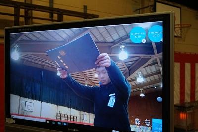 武里西小では、証書授与の際の子供たちの表情を保護者席に向けて放映します。