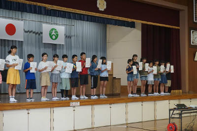 努力のつぼから溢れ出た努力を力に変えて、市内陸上大会や市内体育祭で活躍し、入賞した児童の表彰です。