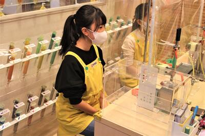 それぞれの企業のブースでは、職員の人たちから説明を受け、職業体験にチャレンジです!