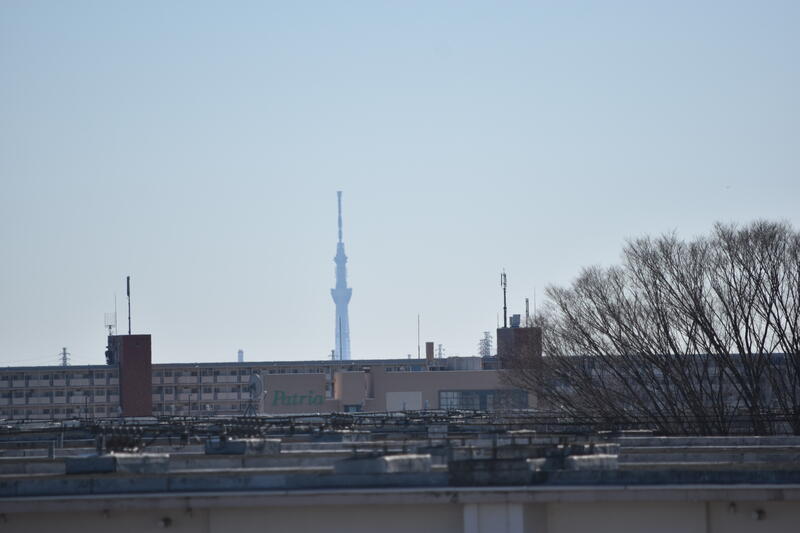 武里団地の向こう側、南方面には、東京スカイツリーが見えます。