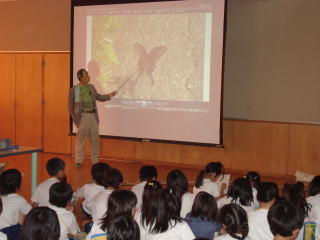 | ゲストティーチャーをお招きしたときにも、 学習形態を変えられ、その自由度が生かされます。 (3年Tタイム 生態系保護協会の方をお招きして) |