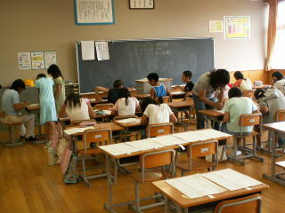 | 夏休みの「算数教室」 冷房の効いた室内で、少人数指導を実施しました。 |