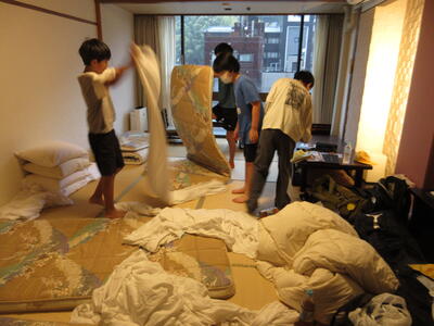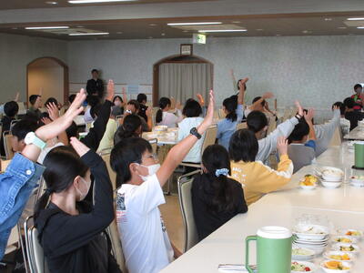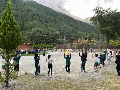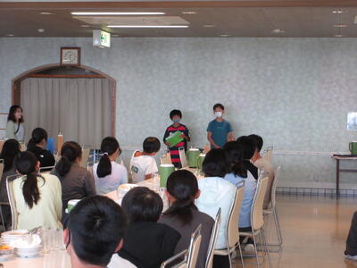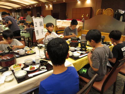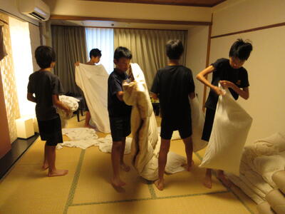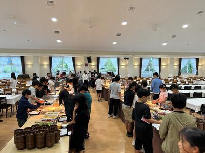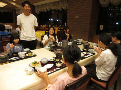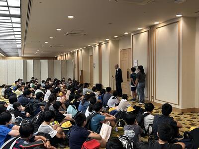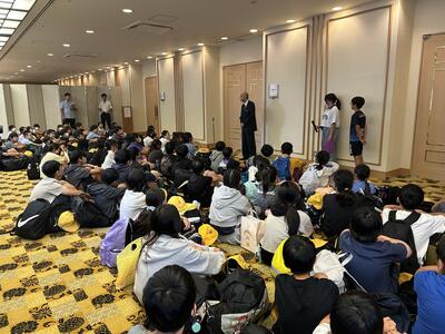 ホテルに到着し、入館式を行いました。この後は、夕食とキャンプファイヤーになります。