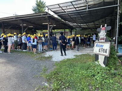 ホテルを出発し、松下牧場に到着しました。ここでは、餌やり体験やバター作りを行います。
