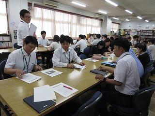 午後は模擬授業や学力状況調査の分析を通して、授業改善について研修を行いました。