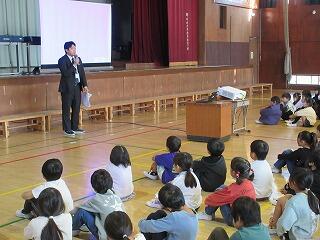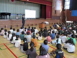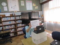 体育館が工事中のため、オンラインで児童集会を実施しました。