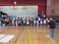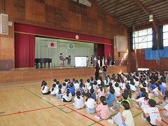 今日の児童集会は、市内音楽会に出場するクラスの壮行会を行いました。