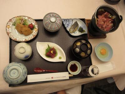牧場での体験が終わり、河口湖荘での食事とお土産の時間です。