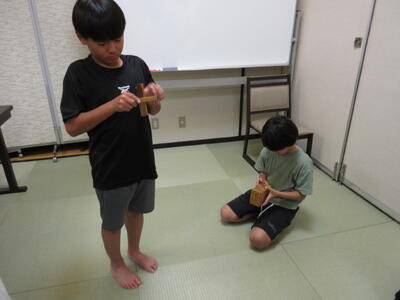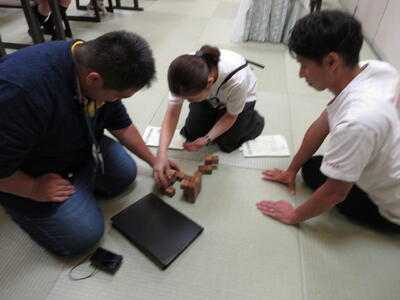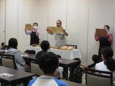 松田桐箱では、桐箱製作の工程や、工場内での作業の様子を見せていただきました。桐の木材や実際に作られた製品に触れ、その軽さや温かみを実感しました。