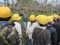 折原果樹園では、収穫に使う道具を見せてもらったり、果樹栽培の工夫について教えてもらったりしました。また、夢や目標をもって頑張ることの大切さについてお話をいただきました。