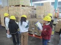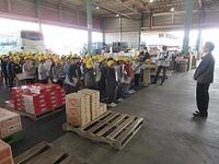 春日部市場では、取り扱いの多い青果の種類や取引量について教えていただきました。班別で場内を見学した後、輸入された青果が保管されている冷蔵庫の中も見せていただきました。