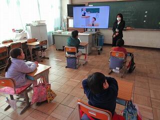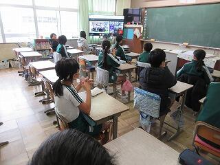 体育館が工事中のため、オンラインで児童集会を実施しました。