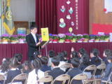 新1年生は学校生活にもだいぶ慣れ、入学おめでとう集会にも落ち着いた様子で参加することができました。