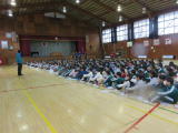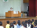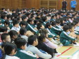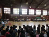4・5・6年生が陸上大会に向けての心構えや練習について、しっかりとした態度で聞いていました。