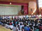 今月の歌、「校歌」や「楽しい立野小」、「離任式の歌」をそれぞれ歌いました。