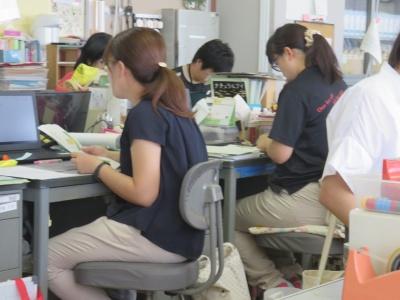 7月26日(金)9:00~、「中学生との勉強会」です。今日も3名の大増中生に御来校いただきました。お忙しい中、ありがとうございます。小学生は、慣れてくるとおしゃべりをしてしまったり、集中力が切れてしまうのかしら???せっかくの機会だから、いろいろなことを学ぼうね。