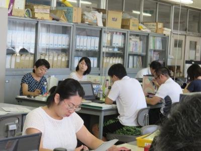 8月21日(水)8:30~、夏季休業中の校内研修会(1日目)が行われました。今日は、「情報研修」「課題研修(研究発表会準備・指導案検討)」に取り組みました。そろそろ夏休みも終わりに近づきましたが、先生たちは元気いっぱい研修に取り組みました。