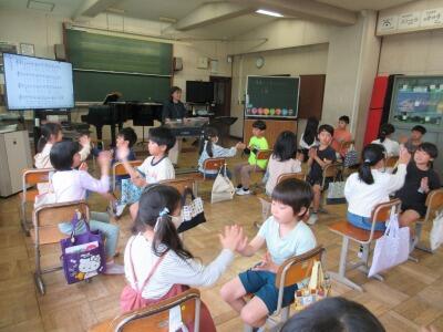 音階に合わせて立ちあがって音の高さの違いを体で感じたり、鍵盤ハーモニカで運指の練習をしていました。