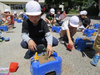 3年生は、建設埼玉の大工さんを講師にお招きし、木工教室を行いました。道具の使い方の指導を受け、一人一人がプランターを作り上げました。製作後の時間には、カンナを使って木を削る体験をしました。薄く削る職人技に、子供たちは感激していました。