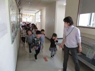 近隣の保育園に通う年長組の園児たちが、学校を見学し、1年生たちと交流しました。