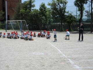 2年生では、キックベースボールの授業でした。ボールの蹴り方を工夫したり、グループで守り方を話し合ったりしてゲームに取り組んでいました。大きな歓声をあげ楽しそうにゲームをしていました。