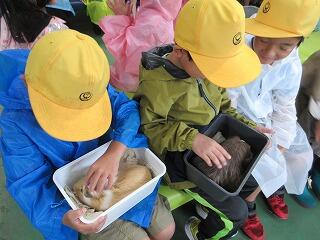 午前中は、小動物とのふれあい体験をしました。ひよこ、うさぎ、モルモットに触れ、手に感じる命の温かさに感動した様子でした。