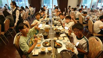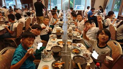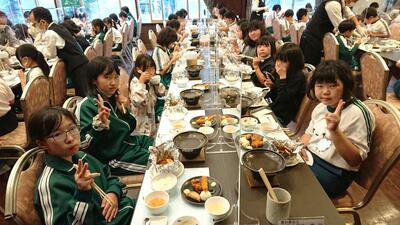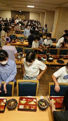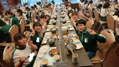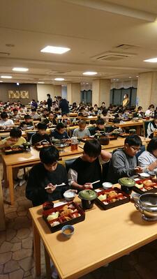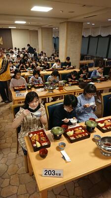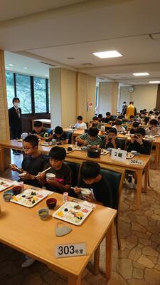 昼食会場に到着しました。林間学校最後の食事になります。湯葉が使われたメニューになります。日光の特産品である湯葉をおいしくいただきましょう。