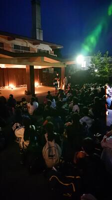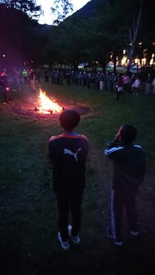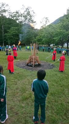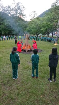 1日、すべての行程が予定通りできました。ハイキングもキャンプファイヤーも全力で取り組みました。明日に備えて、ゆっくり休んでくださいね。