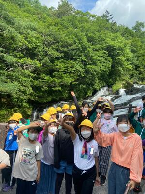 林間学校、3つめの滝に着きました。それぞれ異なる滝を見学してきています。