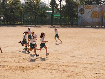 朝の体力づくり「元気タイム」では2日(水)に2年・4年・6年が、きょうは1年・3年・5年が持久走の練習をしました。持久走大会に向けて自分の体力に合わせて走りました。
