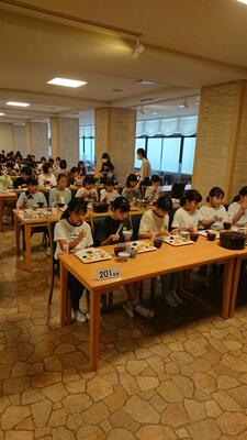 “食欲の秋”、今日の給食は、子どもたち(先生たちも)待ちに待った「フローズンヨーグルト」! みんな美味しそうに食べていました。
