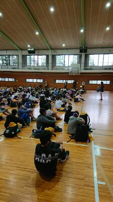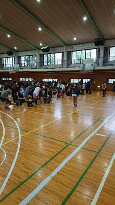 6年生はみんな元気に修学旅行からもどり、体育館で到着式をしました。たくさんの保護者の皆様に迎えていただきありがとうございました。