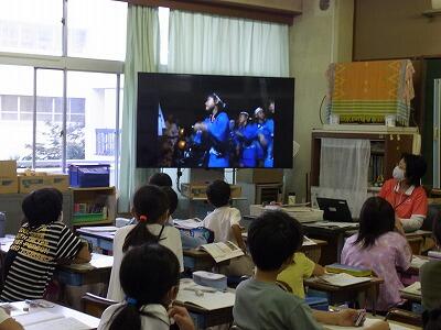 2年生の教室では、運動会に向けて表現の練習が始まっていました。4年生では、図工の先生と一緒に絵を描いていました。細やかな先生の指導で、みんな素敵な絵を描いていました。給食委員の5年生は、すでに明日の給食のメニューを掲示してくれていました。