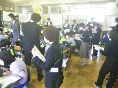 火曜日に研究授業を行った教育実習生は、今日は1日実習に臨んでいました。