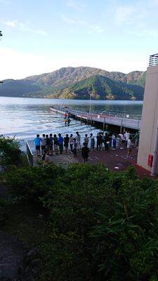 おはようございます。2日目になりました。外を見ると、青空も見られ今日もいい天気で過ごせそうです。各部屋では時間通りに起床し、布団を片付けています。