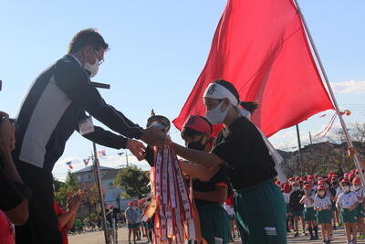 きょうは立野っ子のみなさんの開校45周年記念秋季大運動会です。さわやかな秋晴れの下、立野っ子のみなさんは元気いっぱい頑張っています。赤組も白組も一人一人が全力で走り、競い、表現しています。立野っ子のみなさんの活躍がすばらしいです。