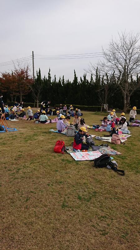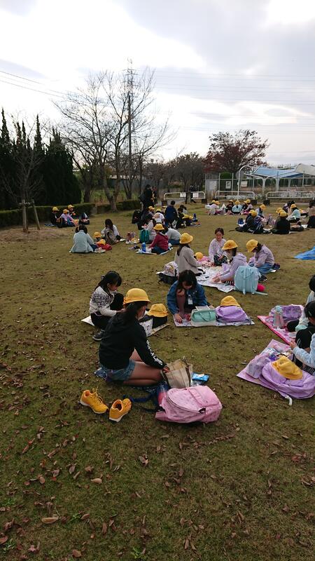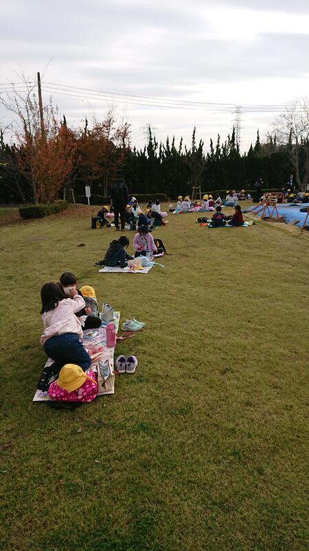 さきたま古墳公園にて、昼食を食べています。お家の方が作ってくれたお弁当をおいしくいただきました。