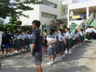 入場前から、音楽委員、合唱部の練習が始まっています。
