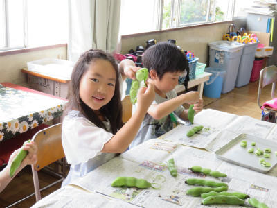 6月16日(金)1年生の給食の様子です。今日は、藤うどんのすまし汁が大人気でした。「校長先生、ピンクのうどんだよ。」と大喜び。「いつものうどんより100倍美味しい!」と大絶賛でした。サバのごまみそがけはちょっと苦手だったのかな?なんでも食べて大きくなろうね。入学してから2か月半、しっかりしましたね。食欲も旺盛です。よく動いて、お勉強するからだね。