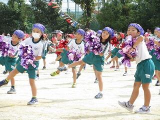早朝の霧雨がやみ、雲が薄くなっていく中で、運動会が始まりました。