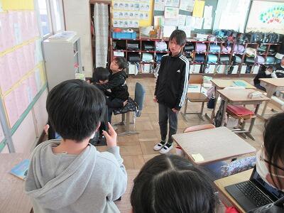 授業の様子を見ると、高学年は総合的な学習の時間のまとめや発表をする学級が多くなりました。今まで学習してきたことをタブレットを使ってまとめたり、画像資料を見せながら発表したりしていました。