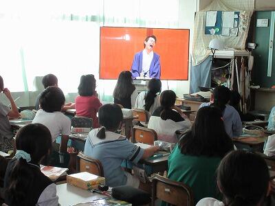 いろいろな教室の授業をのぞいてみると、大型掲示機が大活躍していました。