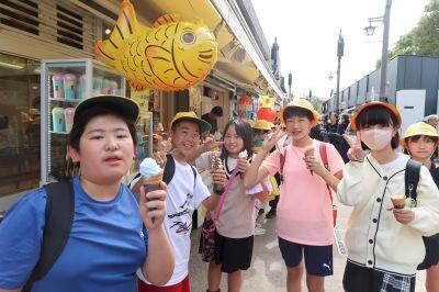 楽しい班行動を終えて、全班、指定された時刻までに集合場所に来ることができました。子供たちはみんな元気です。
