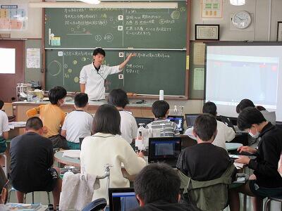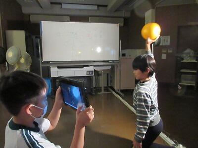 PC室では、暗幕で暗くなることを利用して、理科の「月の満ち欠け」について実験をしていました。